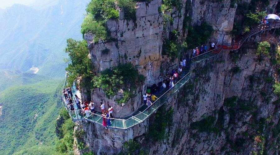 凤凰岭玻璃栈道。位于海拔1080米的悬崖绝壁处,站在千米高的玻璃上,整个人仿佛悬空而立,透过玻璃往下望去,不仅山间美景一览无余,还有一种紧张刺激的快感。